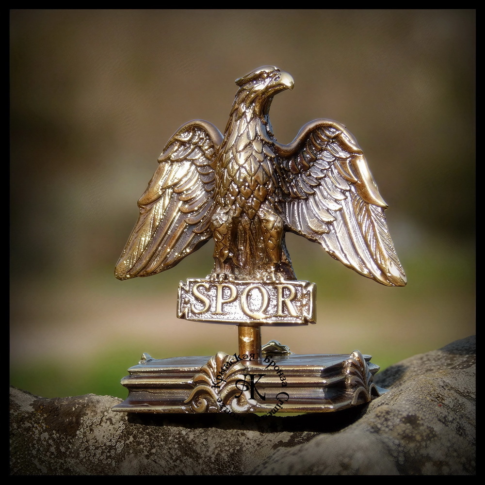 Римский орёл (Aquila) был высшим символом римского легиона, олицетворявшим силу, власть, честь и непобедимость. Потеря орла считалась величайшим позором для легиона. Теперь вы можете держать этот могущественный символ в своих руках.
