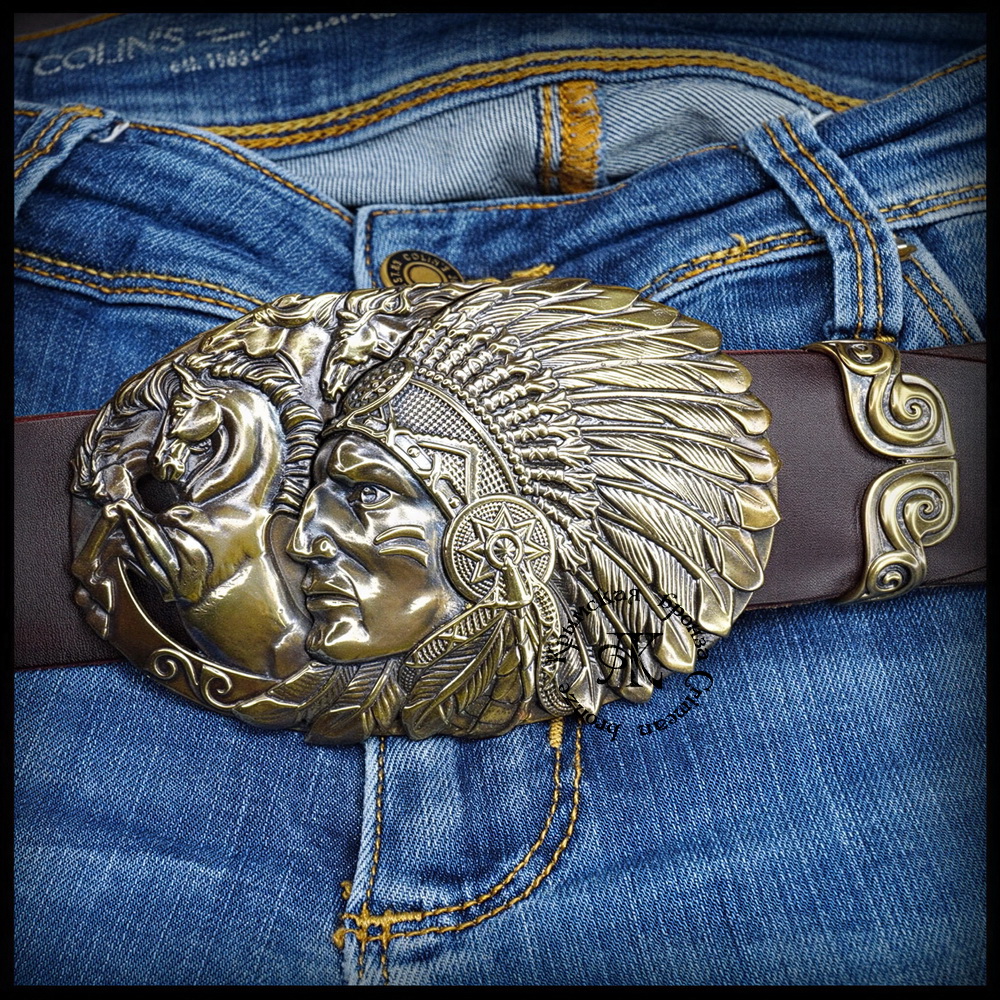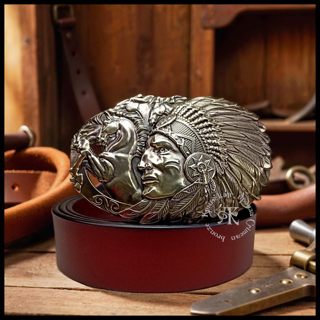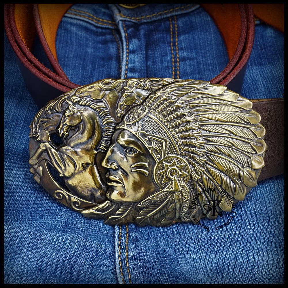 Пряжка для кожаного ремня "Вождь" — не просто аксессуар, а яркое проявление стиля. В центре композиции — детализированное изображение вождя индейцев , гармонично вписанное в бескрайние просторы прерий.
