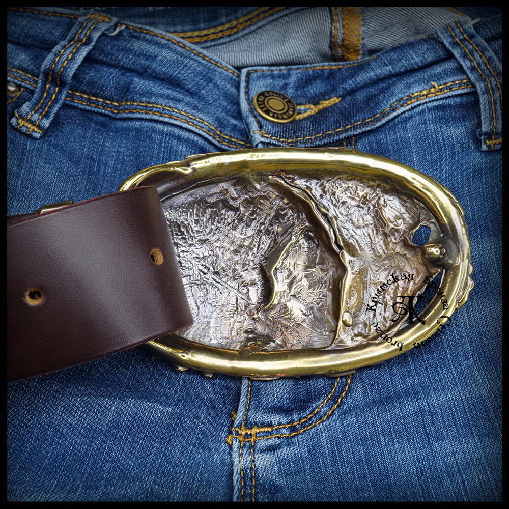 - уникальный дизайн : это не серийное изделие. Благодаря сложной конструкции, состоящей из трех отдельных частей, пряжка выглядит объемной и дорогой. Это по-настоящему авторская пряжка.