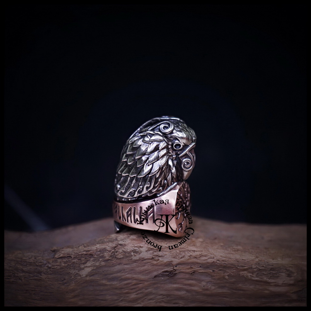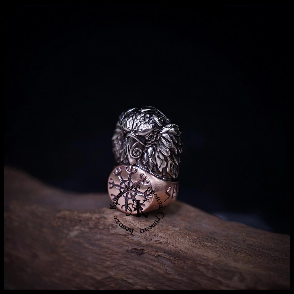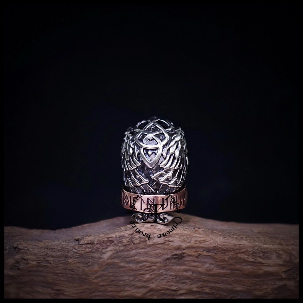 Темлячная бусина "Ворон Одина" биметалл : мельхиор + бронза