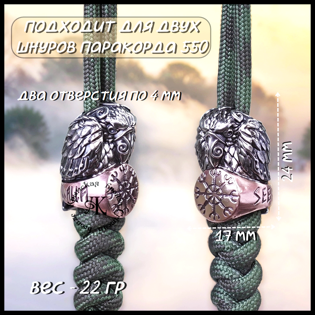 Темлячная бусина имеет два вертикальных отверстия , возможно вдеть 2 шнура паракорда 550