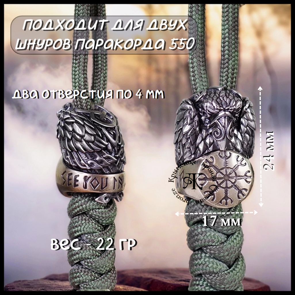 Темлячная бусина имеет два вертикальных отверстия , возможно вдеть 2 шнура паракорда 550