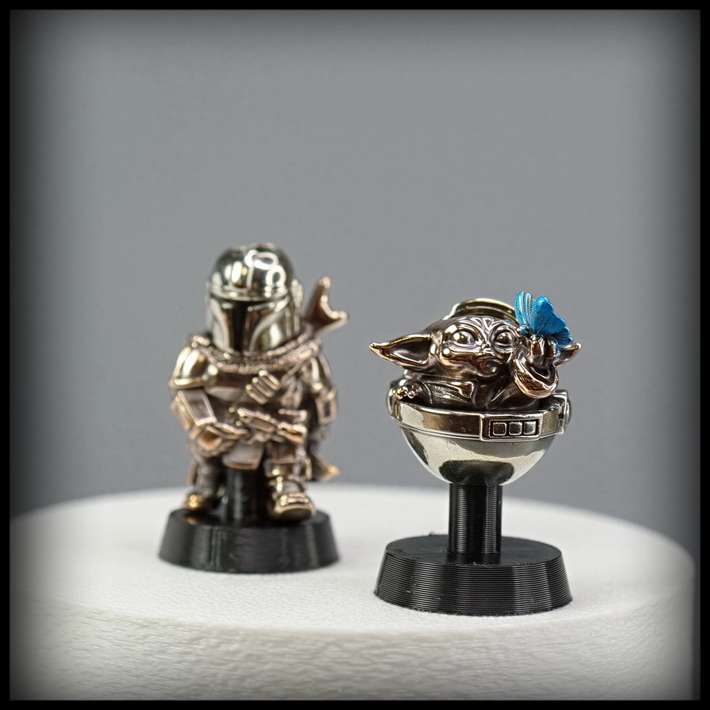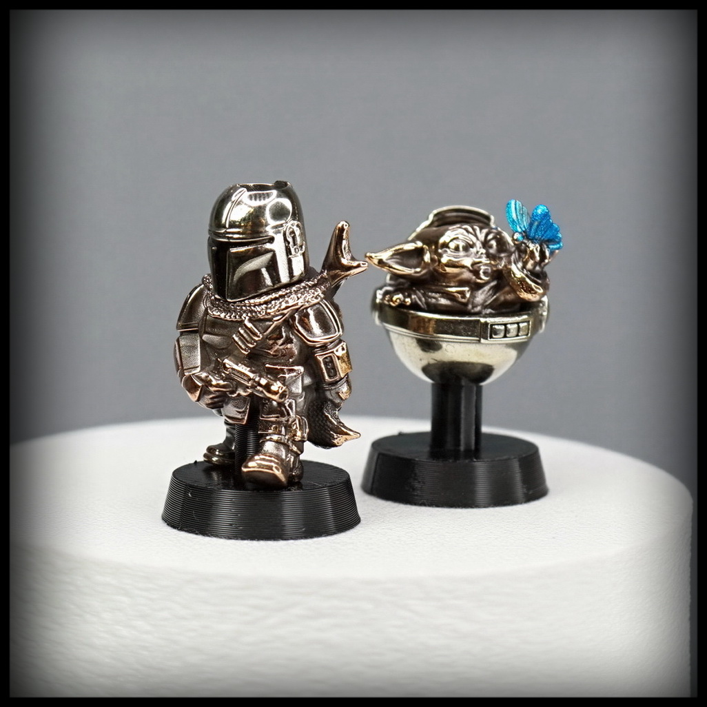 - Мандо : бронза + мельхиор , Грогу : бронза + мельхиор + бабочка покраска